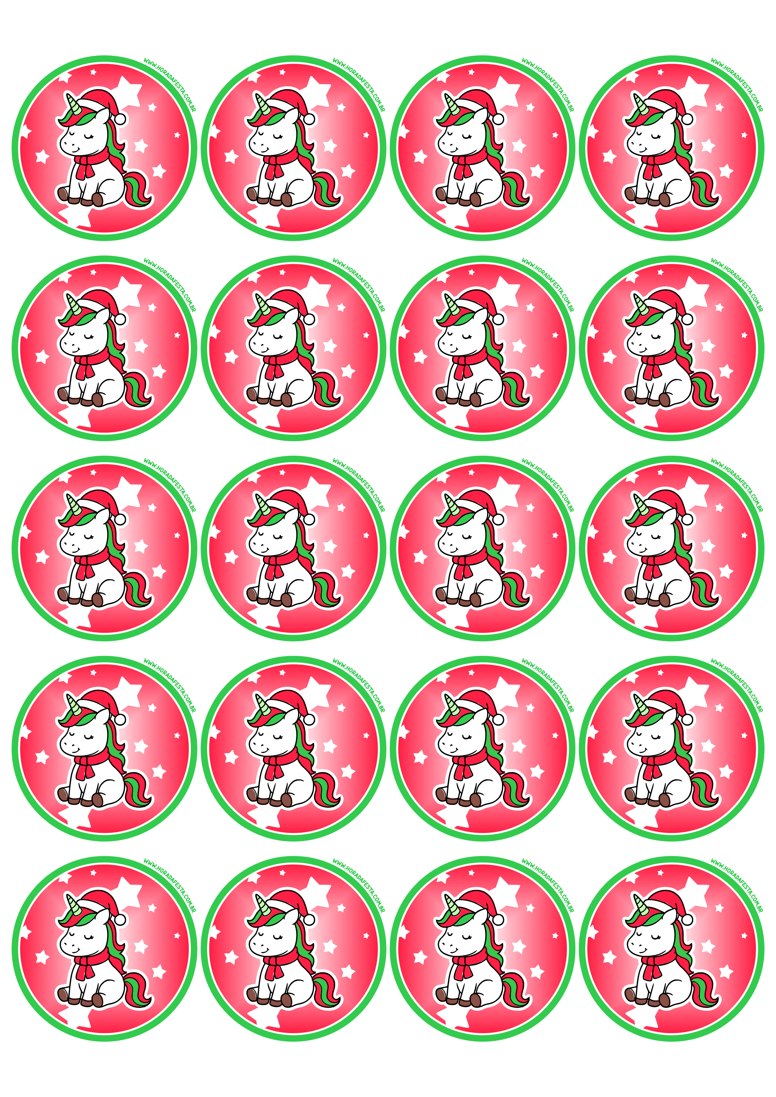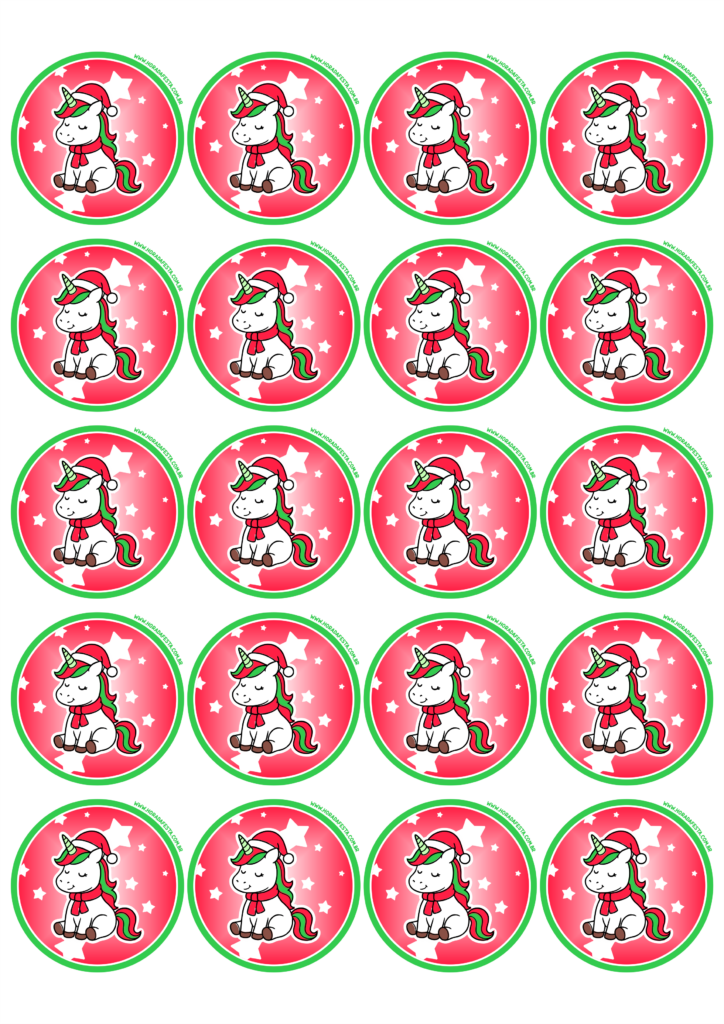 Adesivo de natal para imprimir unicórnio fofinho com gorro e cachecol para decoração de festa natalina e aniversário infantil 20 imagens png