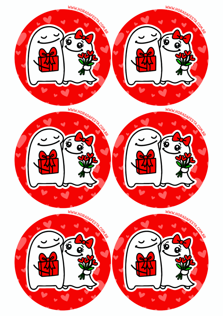 Adesivo redondo decoração para o dia dos namorados flork of cows desenho simples e engraçado 6 imagens png