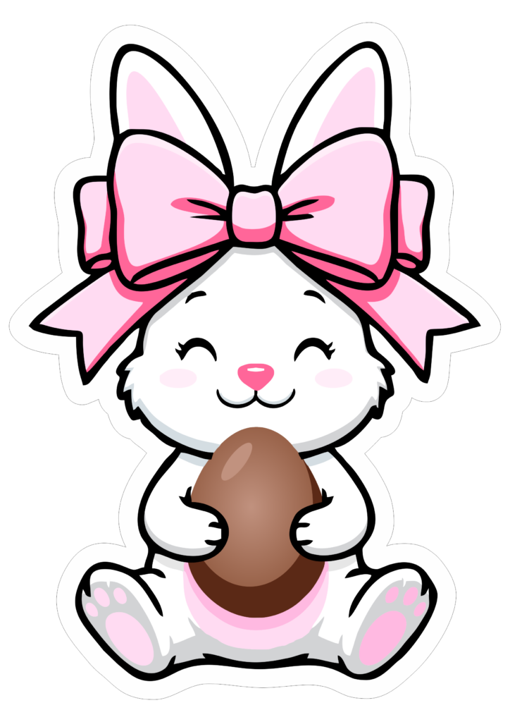 Coelhinho da páscoa fofinho com lacinho rosa na cabeça imagem com contorno ideal para decoração de festa infantil png