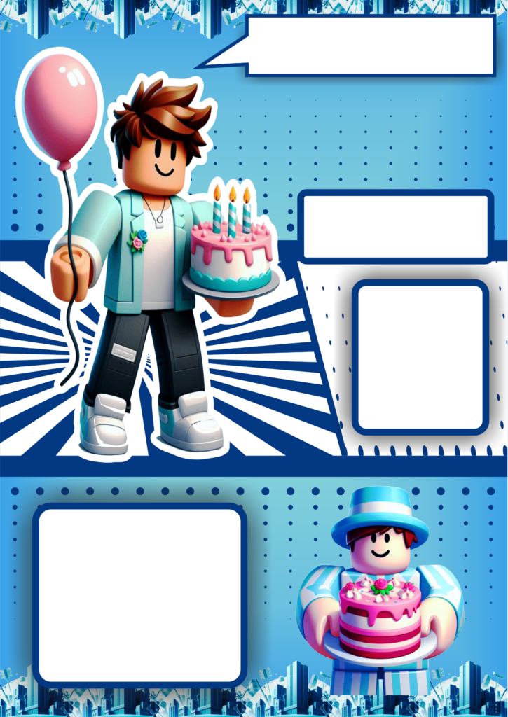 Convite de aniversário azul menino roblox artigos de papelaria molde limpo para personalização festa infantil png