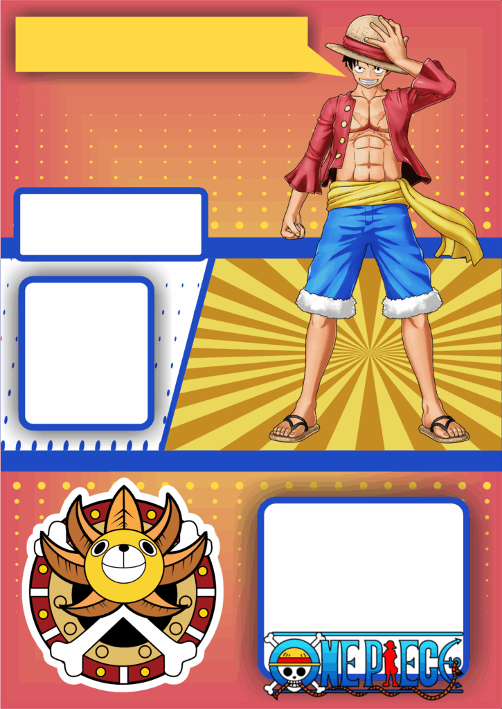 Convite de aniversário One Piece artigos de papelaria molde limpo para personalização festa infantil png