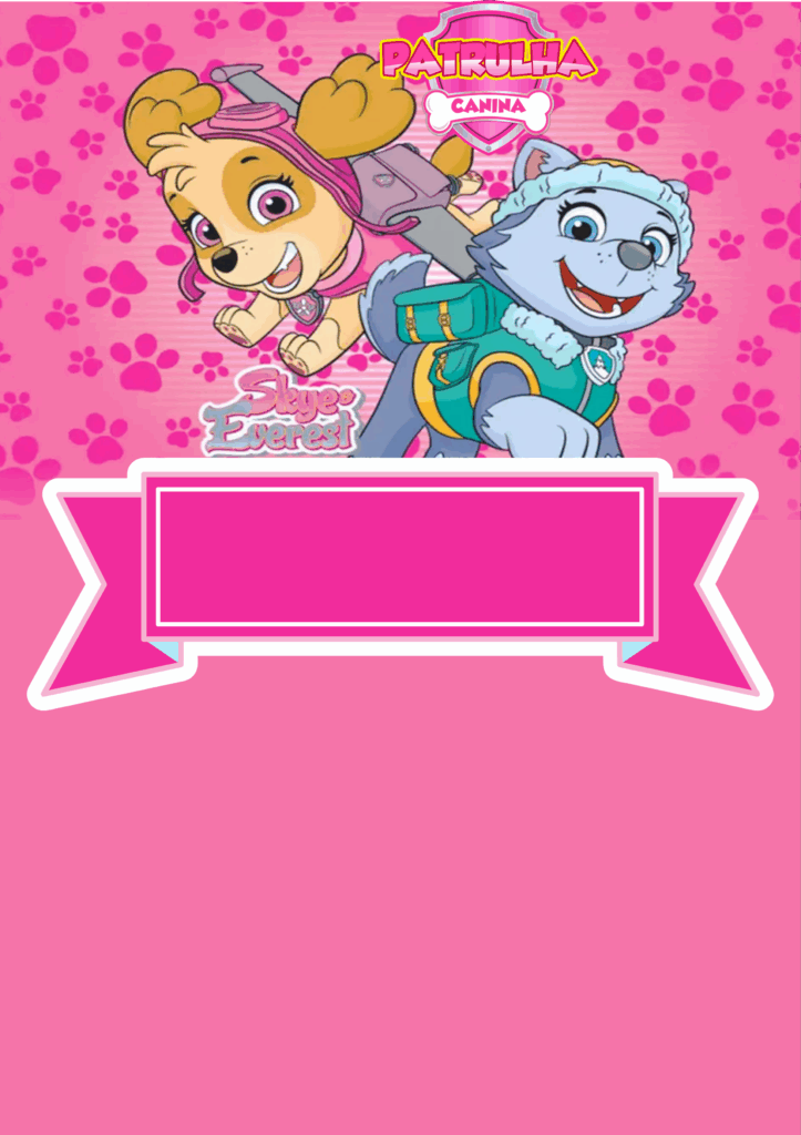 Convite de aniversário Patrulha Canina rosa Sky e Everest artigos de papelaria molde limpo para personalização png