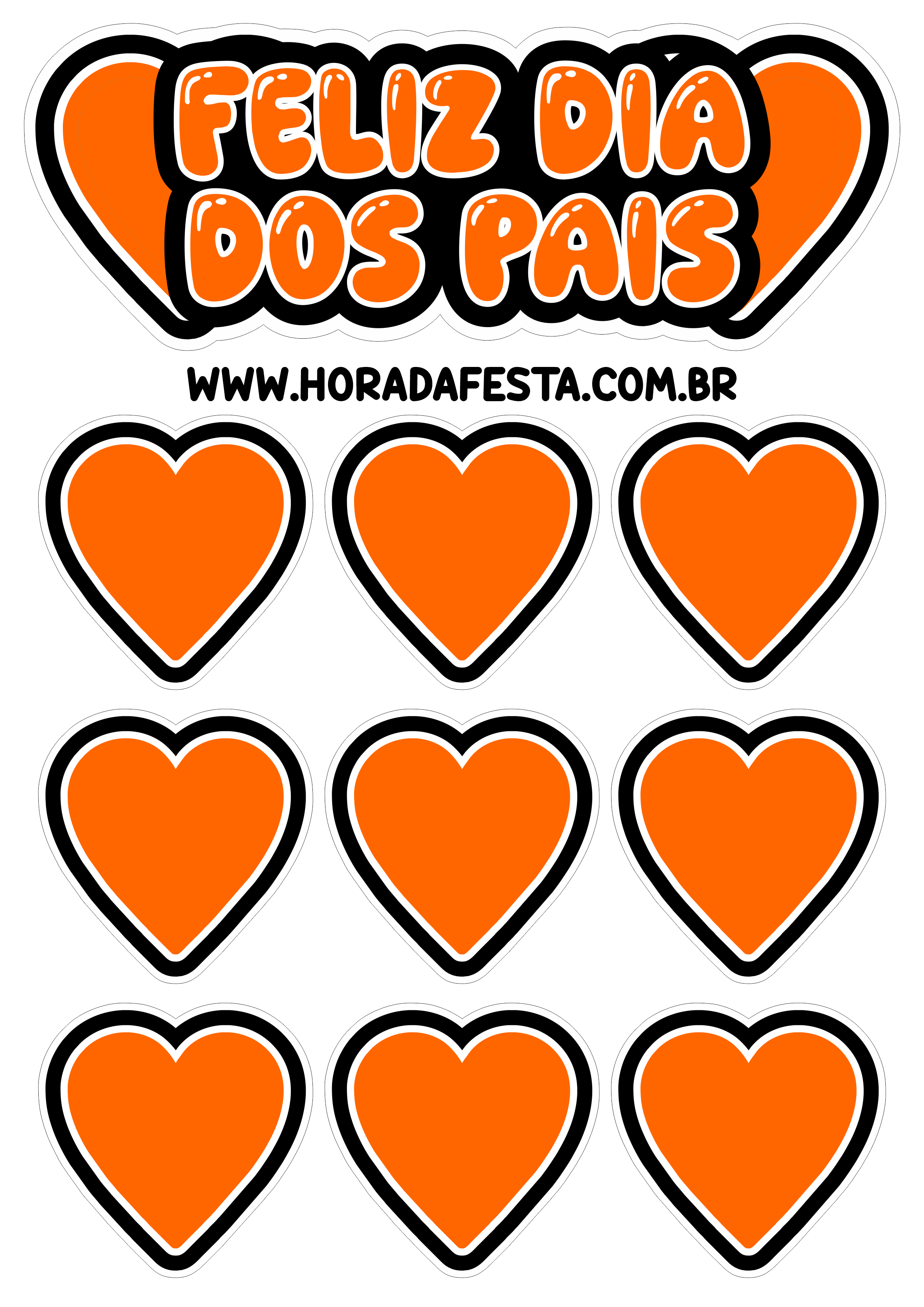 Feliz dia dos pais topo de bolo laranja com corações para imprimir e decorar sua festa png