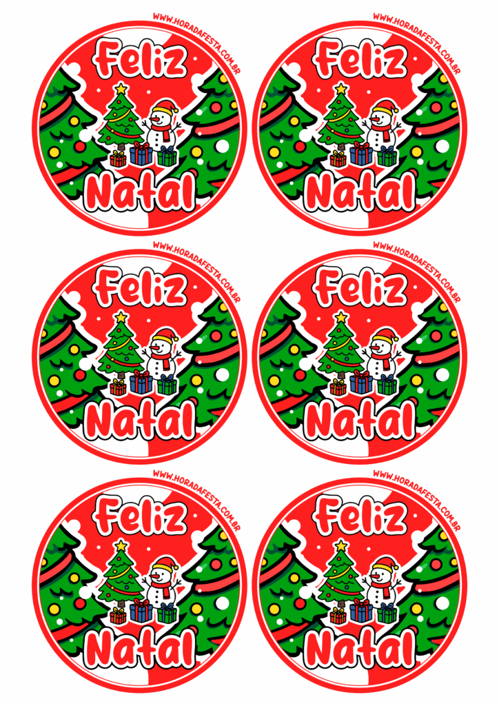 Feliz natal adesivo redondo para imprimir e decorar sua festa natalina árvore e boneco de neve papelaria criativa 6 imagens png
