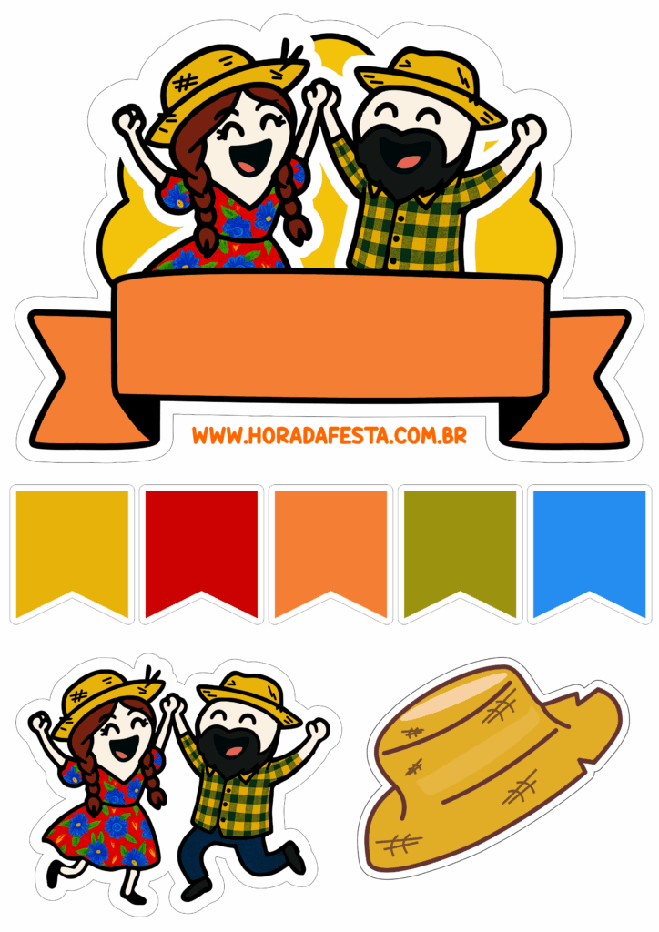 Flork of cows festa junina topo de bolo para imprimir São João com bandeirinhas png