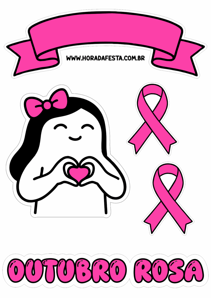 Outubro rosa topo de bolo decoração personalizada lacinho de fita design faça a sua festa flork of cows artigos para festa png
