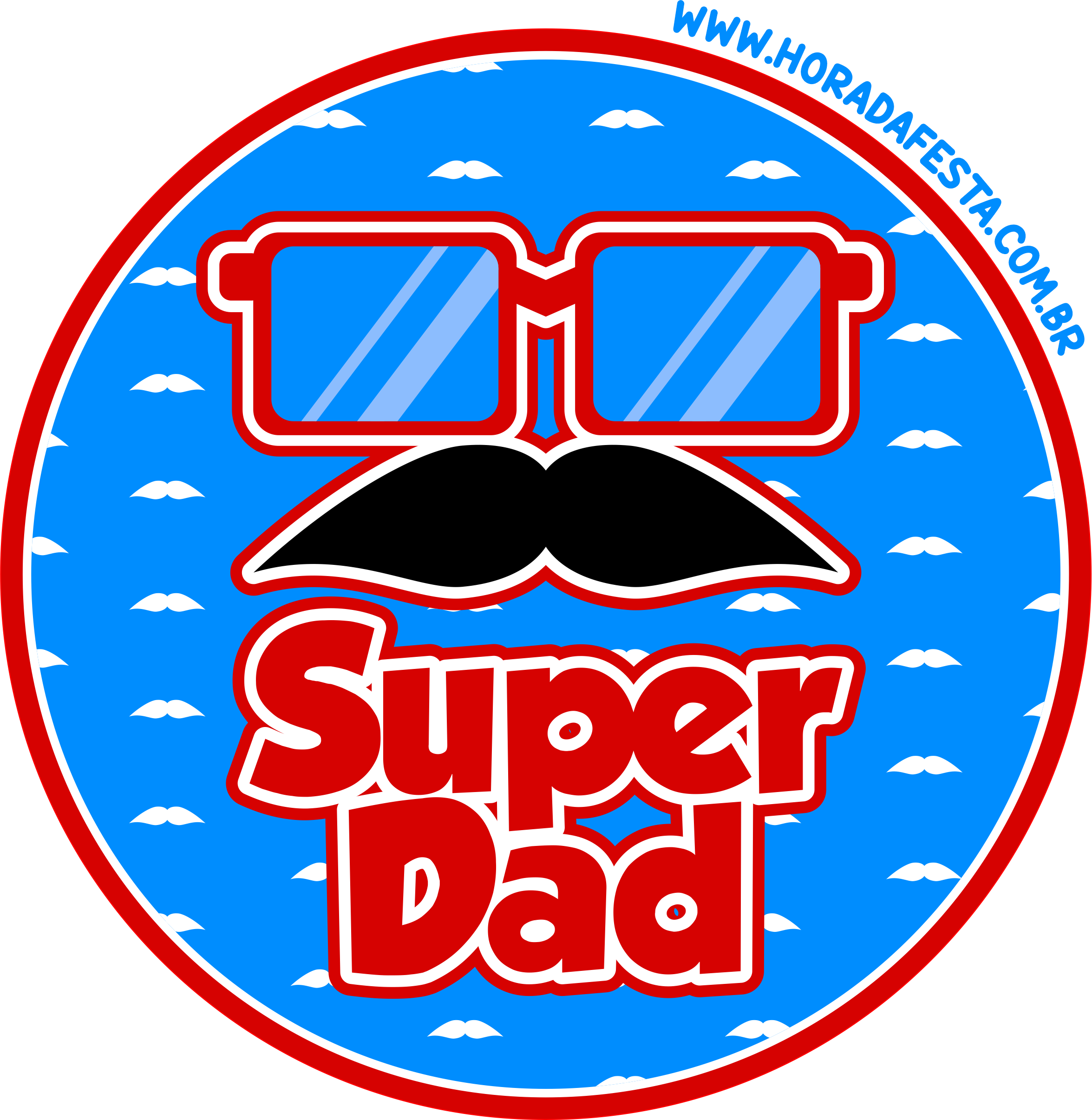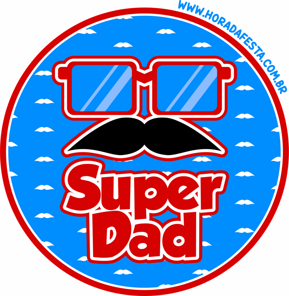 Round sticker super dad printables arts for decoration party glasses moustache blue and red free download png