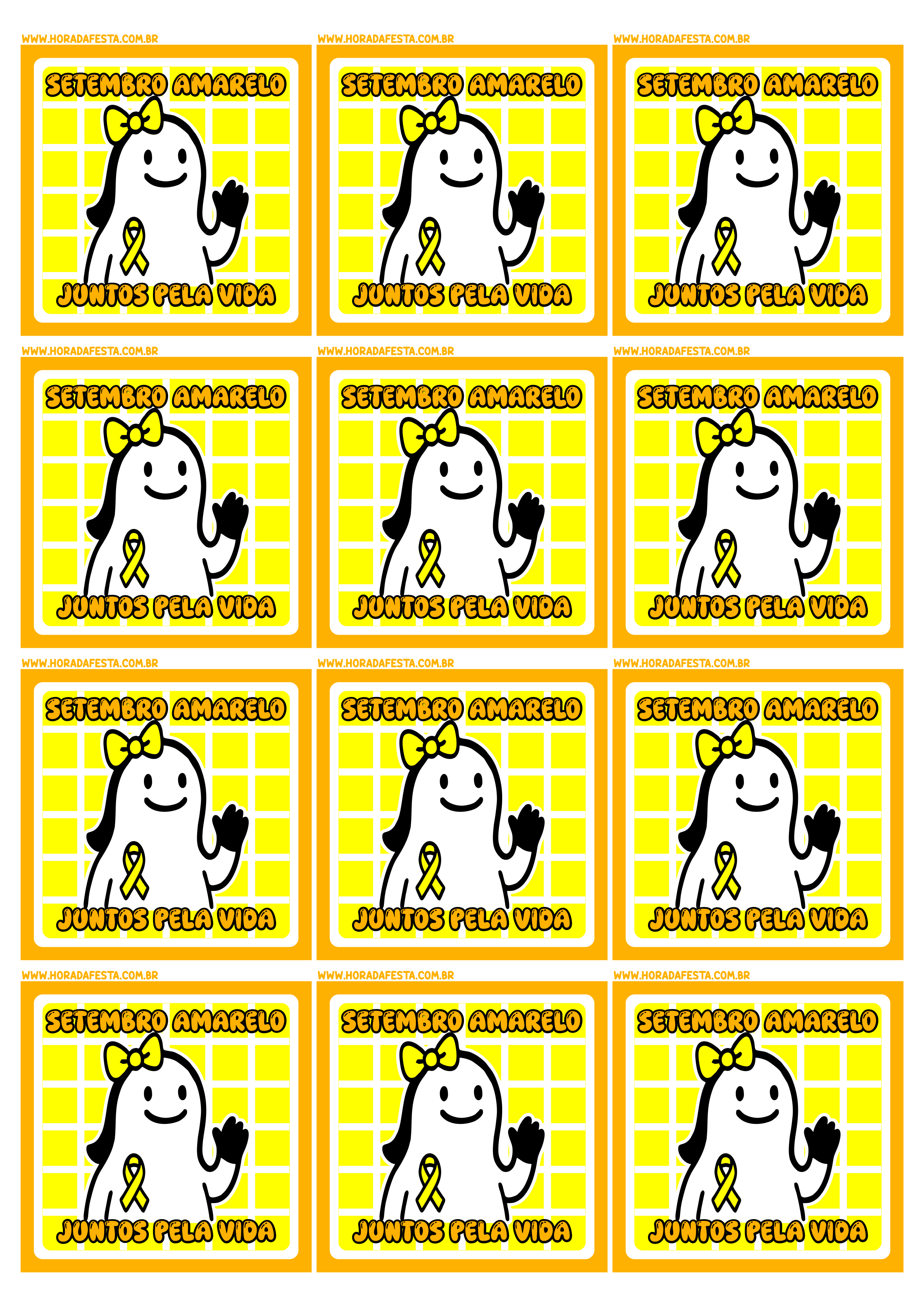 Setembro amarelo campanha de conscientização adesivo quadrado para imprimir decoração etiquetas e mimos para clientes 12 imagens png